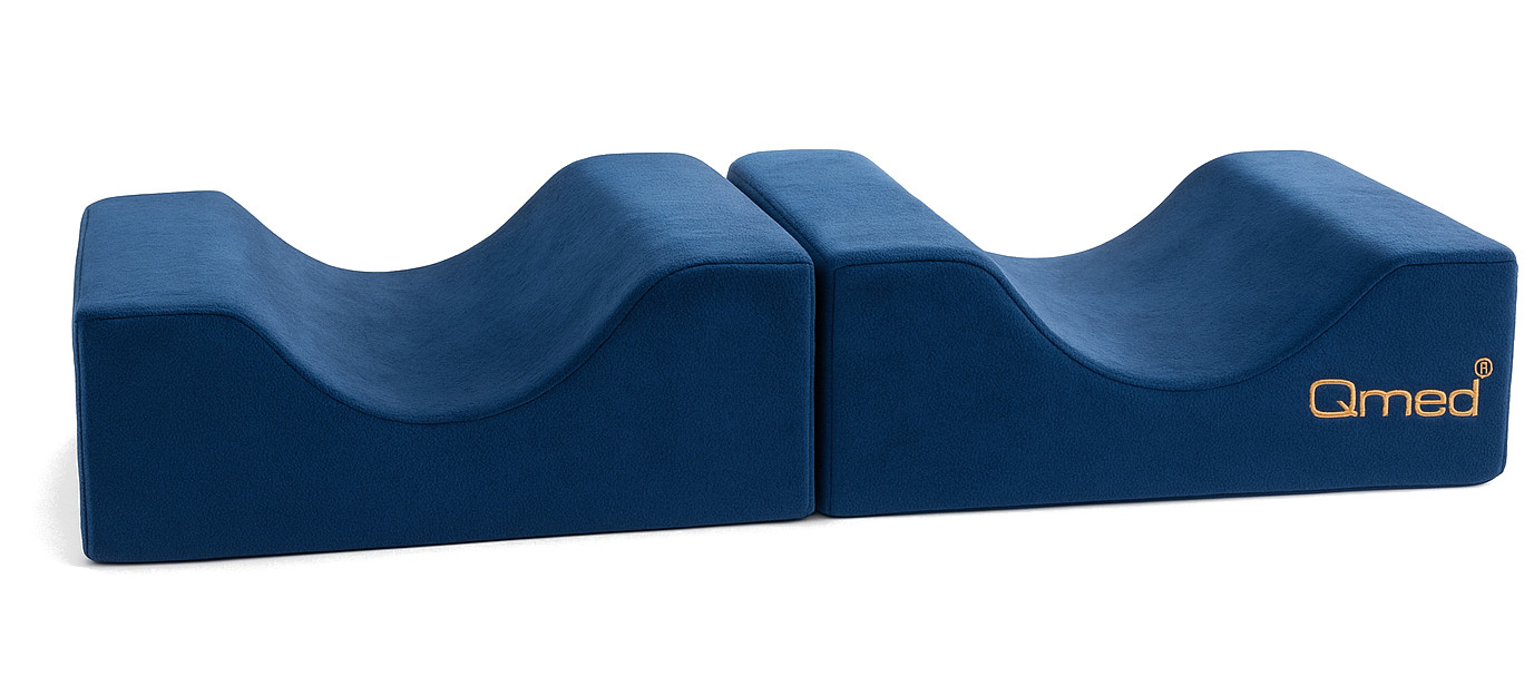 Knee & Leg Spacer - Poduszka ortopedyczna między kolana Qmed to wielofunkcyjna poduszka ortopedyczna-separator przeznaczona do użytku rehabilitacyjnego i profilaktycznego. Produkt posiada status wyrobu medycznego, zaprojektowano go tak, aby stabilizować ułożenie kończyn dolnych i miednicy, ograniczać punktowy nacisk oraz minimalizować ryzyko powstawania odleżyn. Konstrukcja umożliwia zastosowanie zarówno w formie zamkniętej (kostka), jak i rozłożonej — każdy tryb pełni odrębną funkcję użytkową.